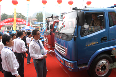 暮春的张家界,峰峦叠翠,姹紫嫣红。坐落在澧江河畔的蓝天大酒店更是彩旗飘飘、春意盎然。酒店广场上载货汽车、农用车、皮卡车、拖拉机等摆成了产品方队,引人入目。尤其是五征集团新推出的“金瑞福”载货汽车和“奥翔”三轮汽车更是吸引了众多经销商的目光,备受青睐。