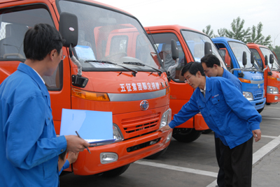 6月5日下午,五征集团捐赠四川灾区的20台价值105万元的五征天骄工程自卸卡车顺利驶下生产线,并完成检验入库,只待抗震救灾指挥部统一安排,择日发往灾区。