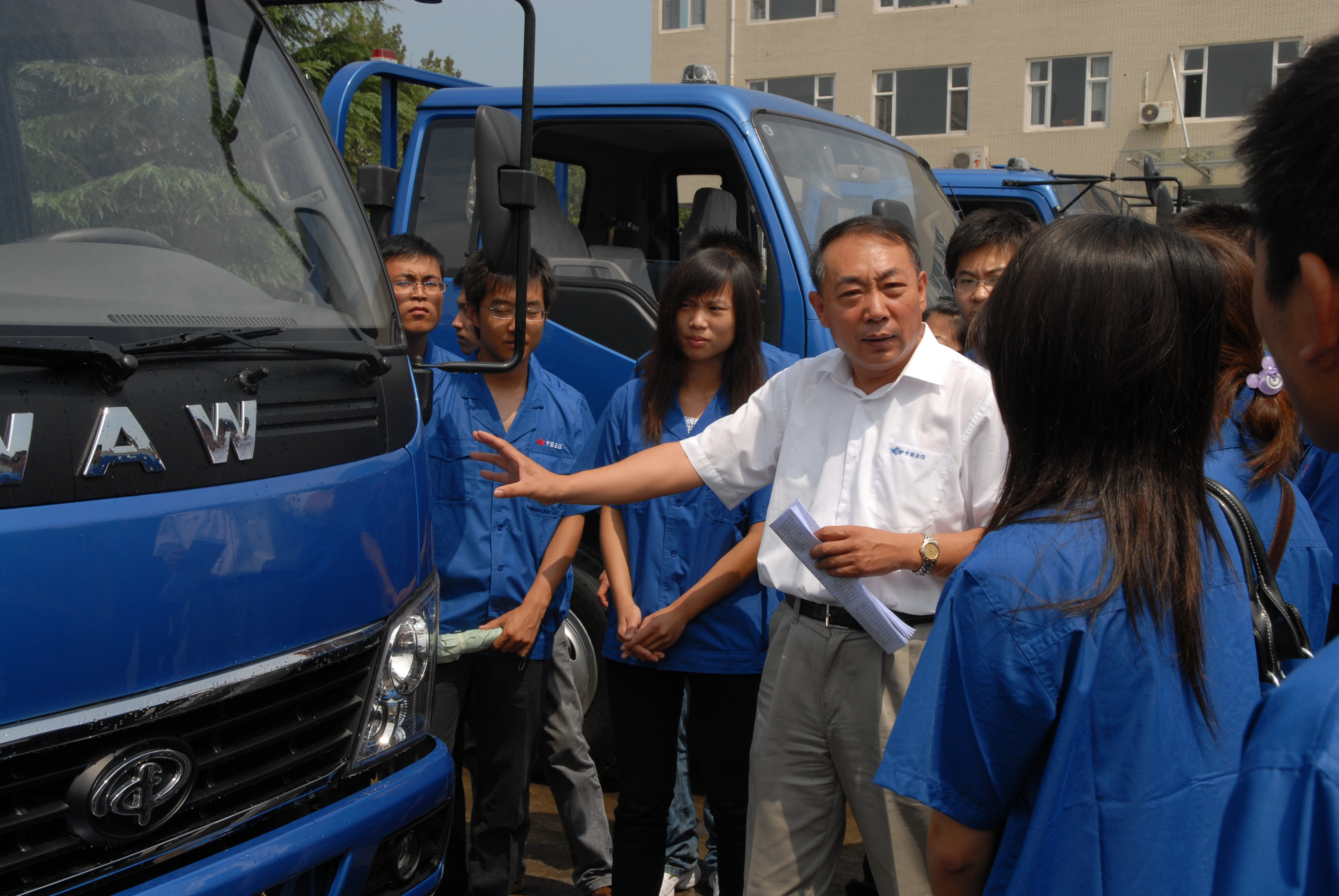 五征汽车设计院常务副院长刘涌泉博士向新入厂大学生讲解五征汽车特点