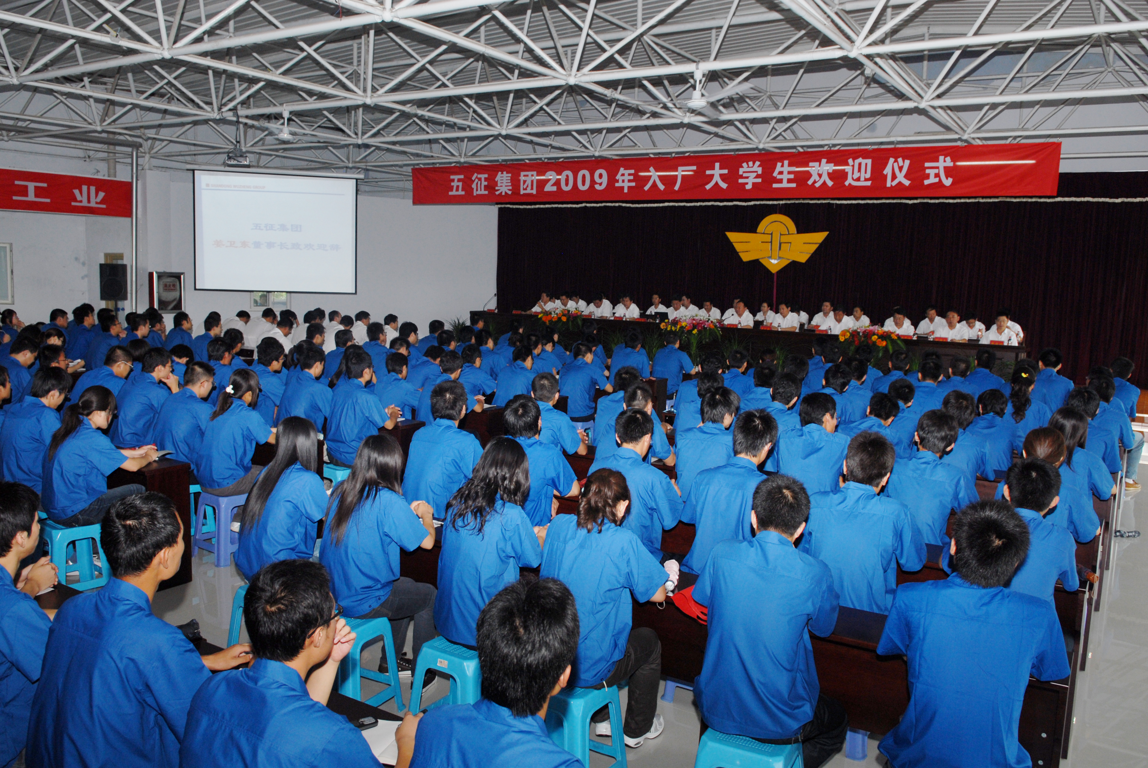 714,五征集团在车辆厂职工活动中心举行仪式,欢迎来自全国各地的240名大学生加盟五征。五征集团部门以上负责人、技术部门室主任以上人员出席了欢迎仪式,五征团董事长姜卫东致欢迎词。