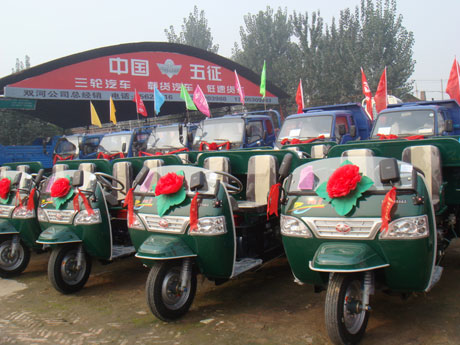 9月28日,在菏泽双河农机有限公司院内,彩旗飘扬,一排排崭新的五征三轮汽车整装待发,通过政府采购的五征三轮汽车交车仪式正在这里举行。交车仪式上,菏泽双河公司杨汉晋经理和五征集团销售公司负责人亲手把51台新车钥匙交到菏泽市中邮物流公司负责人手中,伴着热烈的掌声和欢快的鞭炮声,长龙般的五征三轮汽车缓缓驶出公司,壮观的场面引来众多群众驻足观看。