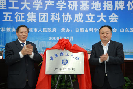 在产学研合作签字仪式上,青岛理工大学的赵怀明书记与五征集团的李瑞川副总经理签订了产学研合作协议。在热烈的掌声中,赵怀明书记与姜卫东董事长为“青岛理工大学产学研基地”揭牌。