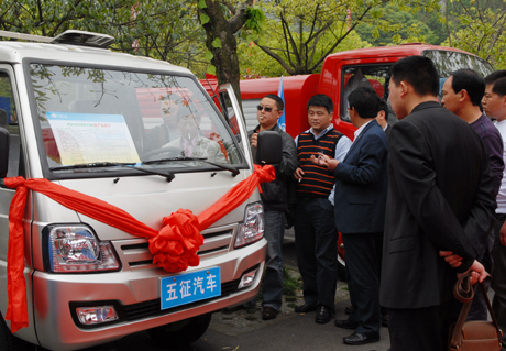 2010五征营销商务年会上,五征携旗下载货汽车、农用车、拖拉机等全系产品集体亮相峨眉山,阵容庞大,颇为壮观。五征新近推出的微卡1500车型吸引了众多入会者的眼球,它是五征载货汽车家族中的新成员。