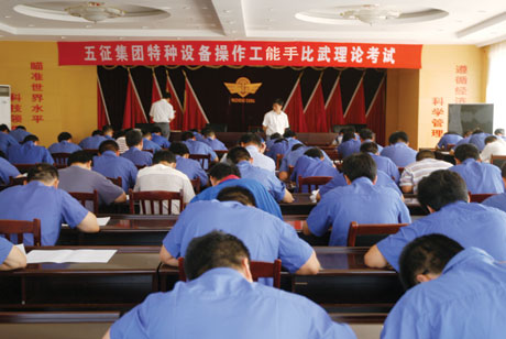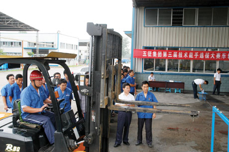 为进一步提高广大员工的技术业务素质,掀起全员学习技术的热潮,自2004年以来,五征集团每两年举行一次全员技术比武活动,通过技术比武比出车间级、分厂级和集团级技术能手,并给予相应的技术补贴。和往年一样,本届技术能手选拔仍然采用理论考试和实际操作相结合的方式。公司制订了详细的选拔方案,理论考试试题由人力资源部按照工种分类统一拟定,内容涉及企业精神、产品知识、工作职责及本工种专业基础理论知识各个方面。公司还专门设立了各工种评审人员,对参赛职工的理论考试成绩进行评审,成绩较差的职工将失去参加下一阶段实际操作比赛的资格。此次技术比武得到了全体职工的积极响应和热情参与,有近6000名员工参加了车间级初赛。