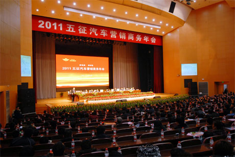 1223,日照市会展中心广场上由五征载货汽车、农用车摆成的产品方队阵容庞大,引人入目,2011年五征汽车营销商务年会在这里隆重举行。五征与来自全国各地的五征汽车经销商齐聚一堂,总结回顾过去一年的工作,安排部署今后工作重点,加强沟通与交流,增进了解与互信,共谋产销双方协同发展。姜卫东董事长在会上作重要讲话,常务副总经理李凤楼主持年会。