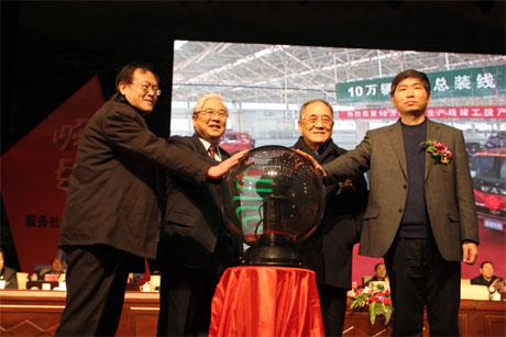 在全场雷鸣般的掌声中,何光远部长、郭孔辉院士、高方副主任、周惠平副主任为10万辆汽车生产线竣工投产剪彩,并开启“五征改制十周年暨年销售收入超100亿庆典”仪式。