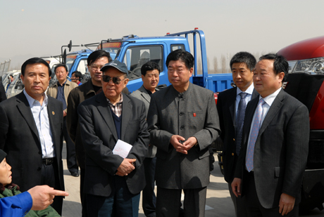 宋健还饶有兴趣地参观了五征产品,在新开发的“凌驭”三轮汽车旁,姜卫东介绍,这是应用汽车技术开发的三轮汽车,是行业标杆产品,它解决了农村的运输难问题,对帮助农民致富起到了重要作用。宋健听后高兴地说,农村需要这样的新技术、农民需要这样物美价廉的运输工具。