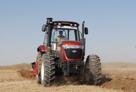 正在驾驶雷诺曼的机手内蒙古联合利蒙农业股份有限公司机械部经理马世波看到五征三包人员的到来,高兴地停下机器,下车与三包人员打招呼并迫不及待地说:“五征雷诺曼真不错,我开过不少品牌拖拉机,还是第一次碰到这么好的。500多米长的地块只用10多分钟就走一个来回,挂着六耕犁如履平地。”马世波高兴地描述,雷诺曼的动力换挡真是个好东西,轻巧灵便如同轿车换挡一般,倒车雷更是方便了耕种作业。他还说,新机器还是在磨合期,不舍得开高速,就是这样低速耕地每小时也耕地12-14亩,油耗只是在