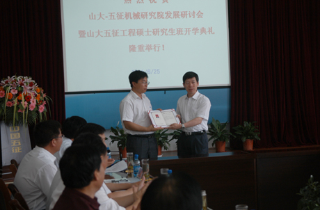 仪式上,李剑峰院长还介绍了山大-五征机械研究院成立3年的工作和发展规划、研究生班教学情况;王志明副院长阐述了人才在企业发展中的关键作用;学员代表曲殿伟、刘昌盛在仪式上发了言。山大机械学院书记黄传真为课程班学员颁发了结业证书。