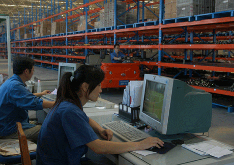 车间的投料工告诉记者,原来每天都要开着电瓶车在生产车间和仓库转几趟,老的仓库没有充分利用立体空间,运输物料时需要在仓库挨着转、动手搬,现在一圈下来就有专人开着叉车往电瓶车上放好物料,特别省事。