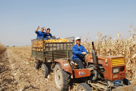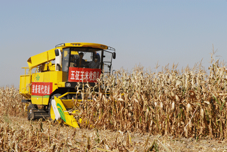 几年前,五征就看准了玉米收获机巨大的市场空间,整合技术力量,首先研制开发出了两行、三行玉米收获机,经过近4年的改进完善,产品技术已经成熟,得到了专家和用户的肯定,产销量连年翻番,成为市场的佼佼者。去年五征又借鉴国外的先进技术,秉承五征为用户创造最大价值的研发理念,开发出了具有国内高端水准的四行自走式玉米联合收获机,并在东北地区进行了可靠性试验,通过了国家农机部门的技术鉴定。由于玉米收获机出色的表现,尽管是几台试验产品,也被当地群众抢购了。今年,四行玉米收获机实现了批量生产,产品一经上市,立即在黑龙江、吉林、辽宁等地引起强烈反响,经销商订单迅速增加。五征农业装备公司加班加点赶订单计划,也直接体现了玉米收获机市场的热度。