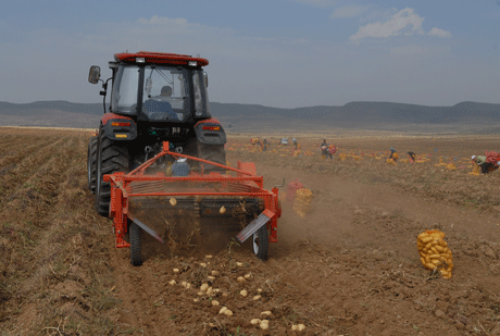 据五征农业装备技术人员介绍,五征马铃薯收获机采用欧洲技术,挖掘率高,伤薯率低,机架采用框架结构使用寿命长。在马铃薯收获过程中,不仅要挖出来还要清理保护好马铃薯。任何一道工序出现差错都会影响农民的收入。五征马铃薯收获机将马铃薯挖起后经过筛板筛选,完成土与马铃薯的分离。使用机械收获马铃薯不仅减轻劳动强度,而且大大降低马铃薯的损伤率。收获效率高,十分有利于规模化种植。