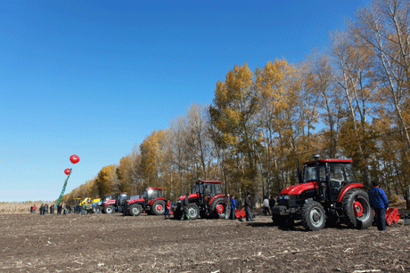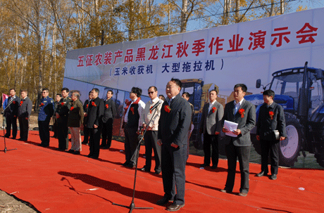 金秋时节,五征农业装备公司组织旗下的大马力拖拉机、玉米收获机、联合整地机等农业装备产品在黑龙江省绥化市青冈县举行了“五征农业机械2011年秋季农机作业演示会”,一展五征高端农业装备产品的性能和风采,同时宣传五征产品研发实力和制造水平。中国农机化协会常务副会长马世青在演示会上指出,五征集团已成为中国农业机械化行业的中坚力量。