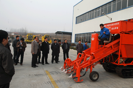 与会领导、专家还现场验收鉴定了花生联合收获机。五征集团副总经理胡乃芹陪同领导、专家参观了五征冲压车间、车架车间和雷诺曼大马力拖拉机生产线。