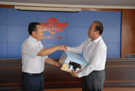 姜卫东董事长向艾民总监赠送五征雷诺曼拖拉机模型