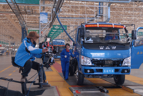 10月18日,电影《人活一张脸》摄制组到五征汽车事业部选景拍摄相关剧情。