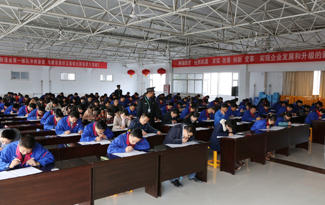 本次理论考试分机械、电气、管理三大类,按专业不同分11种试卷,设日照、五莲、潮河三大考区6个考场。考试内容涉及机械设计制造、电气类基础知识、检验、会计、管理基础以及企业文化等相关内容。考试成绩将与部门及员工年度绩效考核成绩、领导评价共同作为薪酬晋升标准,择优晋升。