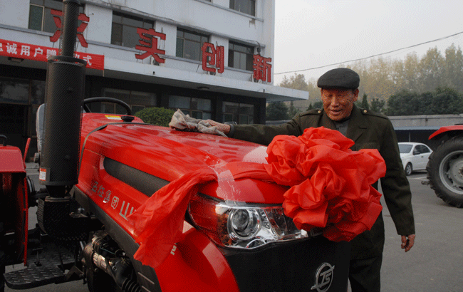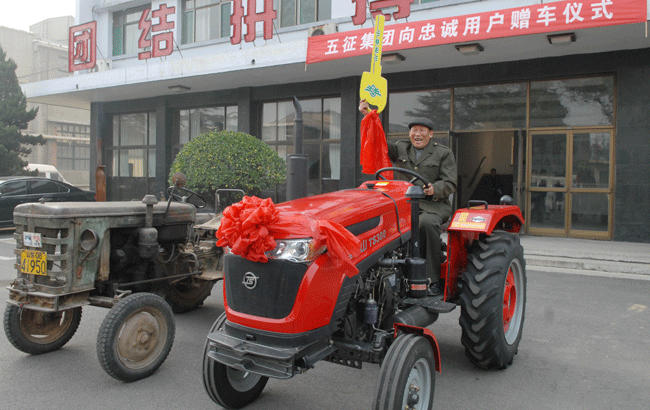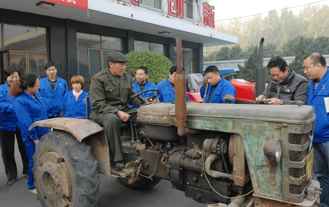“这台拖拉机陪伴了我三十多年,给我创造了财富。使我在我们县和村带头致富,现在我感谢质量这么好的车,今天我把它送回老厂,现在五征集团送我一辆新的30马力拖拉机我特别的高兴。”周凡贞高兴的说道。