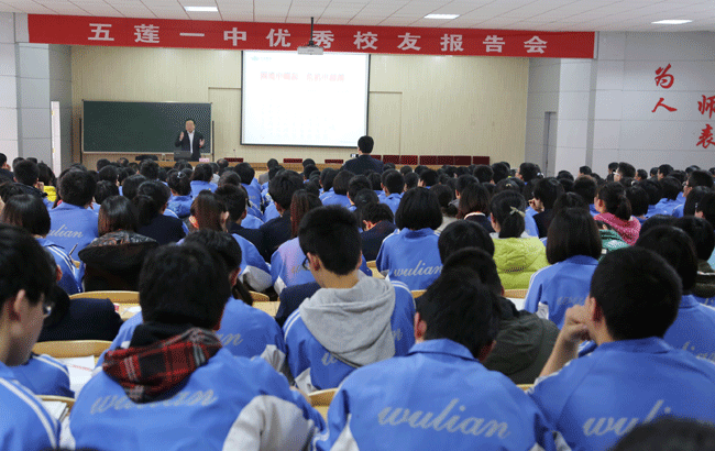 12月7日,姜卫东董事长应五莲一中邀请,在优秀校友报告会上作励志教育专题报告,五莲一中领导班子、各教研室主任以及优秀学生代表共500多人参加报告会。