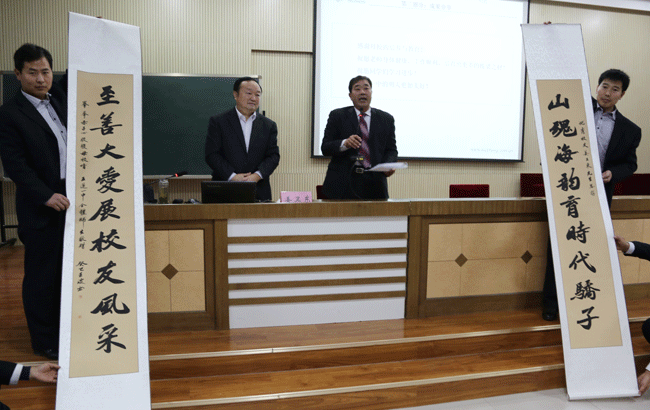 姜卫东的创业经历和突出贡献成为一中师生引以为荣的精神食粮,他朴实的话语,艰苦创业、造福于民的精神博得在场师生阵阵掌声。报告会结束后一中校长向姜卫东赠送了由本校老师创作的书法作品,并陪同姜卫东参观了五征捐建的育才楼、五征计算机室及部分授课教室,对姜卫东及五征多年来对一中的关心支持表示衷心的感谢。