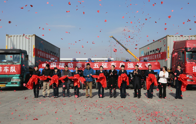 12月26日,中国援助非洲的2550辆五征三轮汽车启运仪式在五征举行。商务部国际经济技术交流中心领导,市商务局局长李宜东,副县长郑娟与姜卫东董事长共同为启运仪式剪彩。