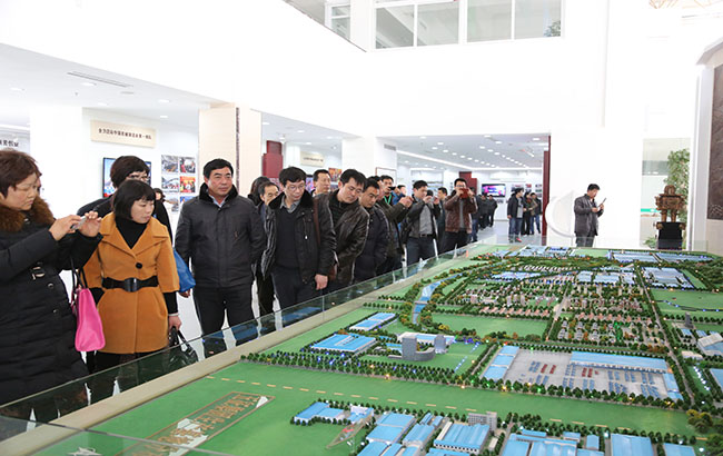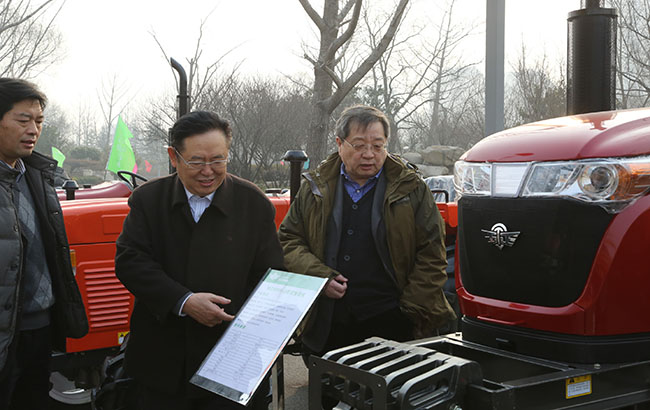 2月22日,出席2014五征农装营销商务年会的领导、专家们在姜卫东董事长的陪同下,参观了五征山拖厂区及产品。
