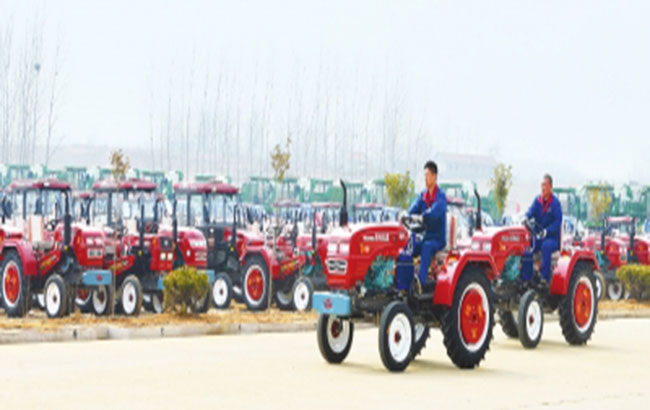春耕时节,农机企业加紧生产,保障货源。图为2月23日,山东省五征农业装备集团员工从车间开出一台台经过检验的拖拉机。
