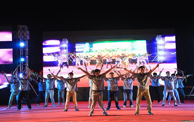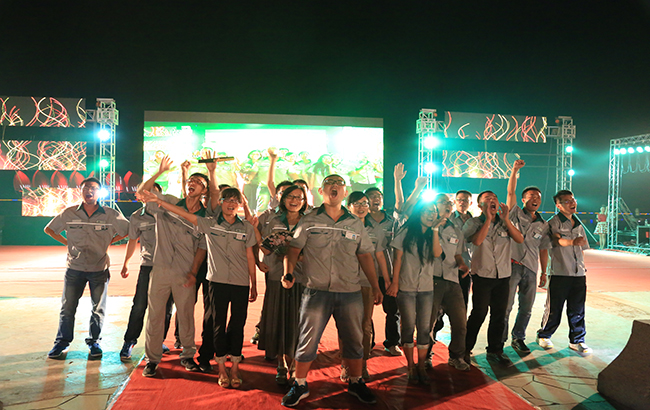 盛夏的山城热情似火,洪凝河畔一片欢歌笑语。晚会在舞蹈《火花》中拉开帷幕,节目大都是大学生们自编自演的,新老大学生合演的歌曲《我相信》唱出了五征人敢闯敢拼的信心与决心,也唱出了大学生们对未来的美好憧憬。晚会中间还穿插了互动游戏与抽奖环节,活动现场还准备了冷餐。晚会历时2个半小时,节目精彩不断、高潮迭起,让新入厂大学生们感受到了五征尊重知识、重视人才的深厚文化底蕴,感受到了五莲城市建设现代、秀美、时尚风采和山城人民的淳朴、热情。