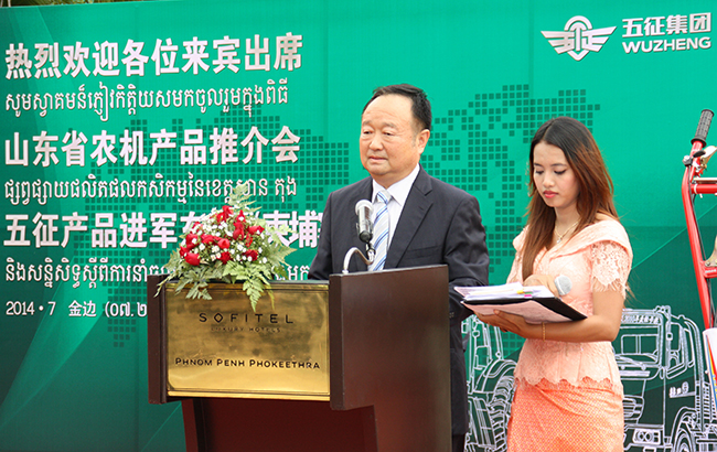 柬埔寨总理府办公厅主任万宝热烈欢迎五征产品进驻柬埔寨市场,指出,山东是中国农业机械生产大省,而柬埔寨以农立国,推动山东农机出口柬埔寨,惠及柬埔寨经济发展,是实现双方经济互补性的双赢举措。五征是中国机械制造骨干企业,其产品的到来必将为柬埔寨农业发展起到重要推动作用。