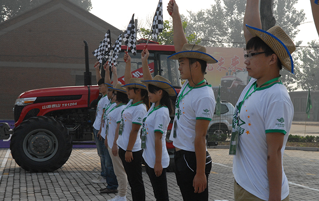 20日,五征山拖装备有限公司厂区内整个赛区被大赛热烈的气氛笼罩,众机手个个摩拳擦掌,跃跃欲试。大赛的指定机型五征TS1204早已整齐排列等候在赛场一侧,只等裁判的一声号令,就会冲上赛道。