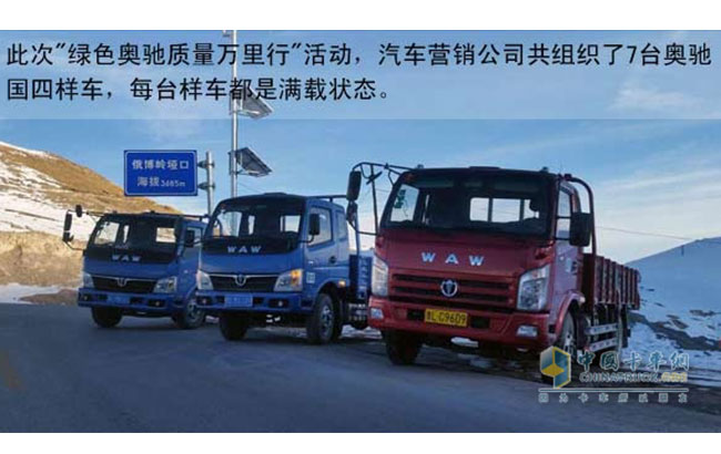 此次"绿色奥驰质量万里行"活动,汽车营销公司共组织了7台奥驰国四样车,每台样车都是满载状态。通过近万公里的跨区域多路况环境情况下的车辆满载行驶,验证车辆的整车性能及零部件的可靠性,为产品设计改进提供依据。