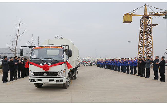 正月初六一上班,在汽车发货场,69辆自装卸式环卫车披红挂彩,在阵阵鞭炮声和员工的掌声中,缓缓驶出厂门,发往市场,这标志着五征专用车产业迎来节后开门红。