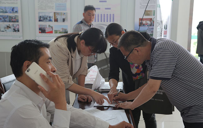 来自五莲的郑师傅对五征今年全新研发推出的GA60小麦收获机情有独钟,刚来到试乘试驾现场,他就登上了小麦收获机,绿色的小麦收获机在他熟练操作下,如同一个绿色的精灵,为这灰蒙蒙的天地带来一股子令人神清气爽的清新气息。驾驶小麦收获机围绕场地转了一圈之后,郑师傅还有点儿意犹未尽,但是看着还有好多人排队等着体验,他才恋恋不舍地下了小麦收获机。他激动地对着五征工作人员说道,五征的小麦机底盘低,轴距大,我搭眼一看,就看出来这机子特别好用,现在开着转了一圈,更有感觉了!快到三夏麦收时节了,我参加培训班目的就是想看看这机器,顺便定上台车,早买早干活,争取一年回本!