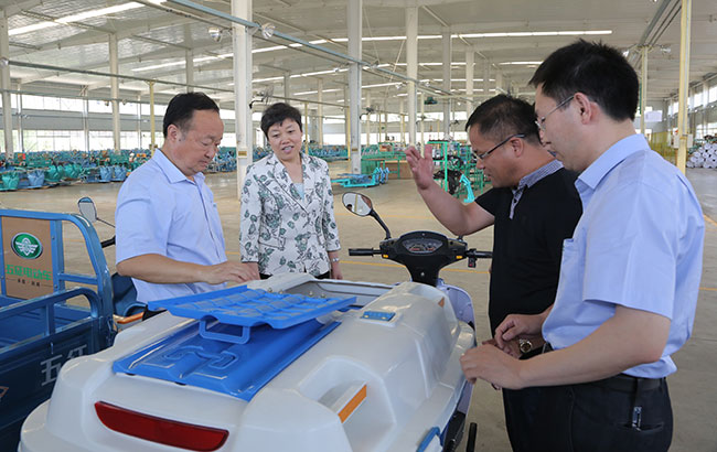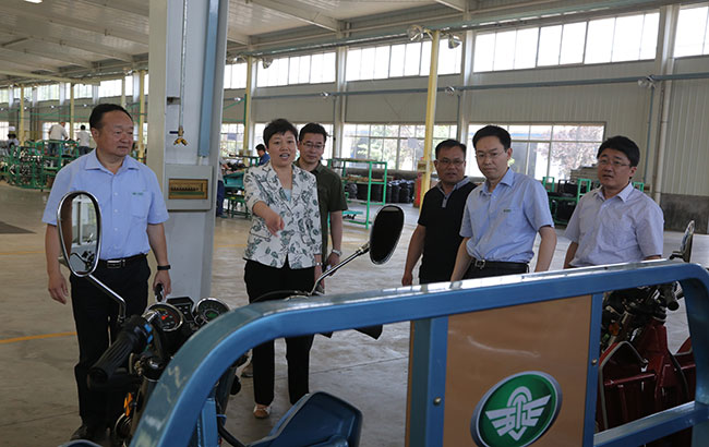姜卫东董事长陪同邹斌芳到五征电动三轮车制造项目现场进行了实地查看,介绍了项目进展情况。他说,五征电动车项目组成立以来,公司成立了电动车研究所,高标准规划建设了装配车间,现已推出电动客运、货运、专用车三大系列16款新车型,并凭借五征产品驾乘舒适、动力强劲、蓄电能力持久的优势迅速占领电动车重载市场。