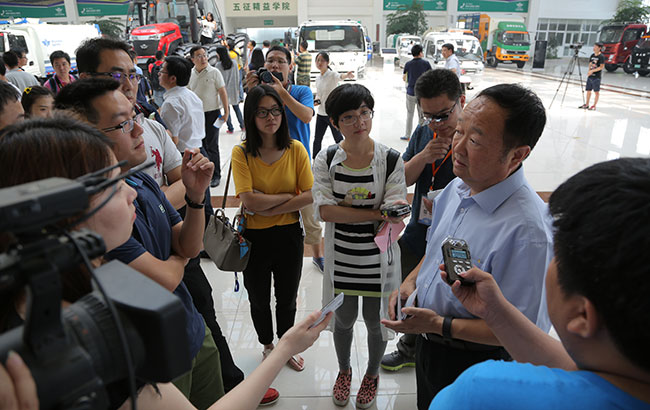 记者们参观了五征会展中心,听取了五征发展历程介绍,并对姜卫东董事长进行了专题采访。当面对五征农用车、汽车、农业装备、专用车系列产品时,记者们为庞大而专业化的产品阵容而震惊,纷纷登上五征产品感受体验、拍照留念。记者们还观看了五征新近开发的大型抑尘车和臂展宽达20米的喷药机作业演示,感受了五征的创新实力。