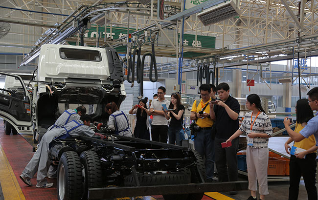 采访团成员还参观了十万辆汽车生产线,车间负责人介绍,该汽车生产线应用信息化技术,打造了及时便利、准确安全的信息化管理新模式。这得益于五征集团开发应用的ERP信息化管理系统,它将公司财务、销售、生产、采购等业务纳入统一管理平台之后,使车间生产变得更加简捷,物料、人员、设备、流程都更加理顺,生产效率大幅度提高,员工的劳动强度也得到了降低。