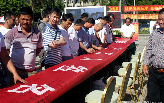 奥驰万里行继行驶了数万公里来到了美丽的海口市,同时不仅带来全新的国四产品,也为海南的客户带来了巨大的订车优惠,在此次推介会上订车即可享受优惠。