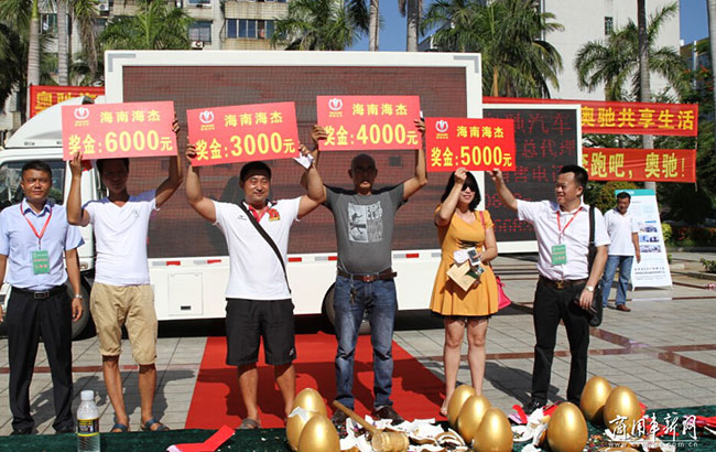 奥驰汽车经销商海南海杰贸易有限公司五周年庆恰逢此次活动。为减少用户的购车成本,切实回馈广大用户,现场举办了购车多重优惠活动。据介绍,只要现场购车预付一定金额,就可以实现超额支付,其中悦菱订车预付1000元定金可抵3000元使用,其他车型预付2000元即可抵5000元使用。同时,订车用户还可以参与砸金蛋中大奖活动,5000元、3000元、1000元代金券回馈用户。此外,订购指定车型还可获赠空调、冰箱、交强险、车船税和上牌等超值服务。最终,28台的现场购车也足以证明此次活动的成功。