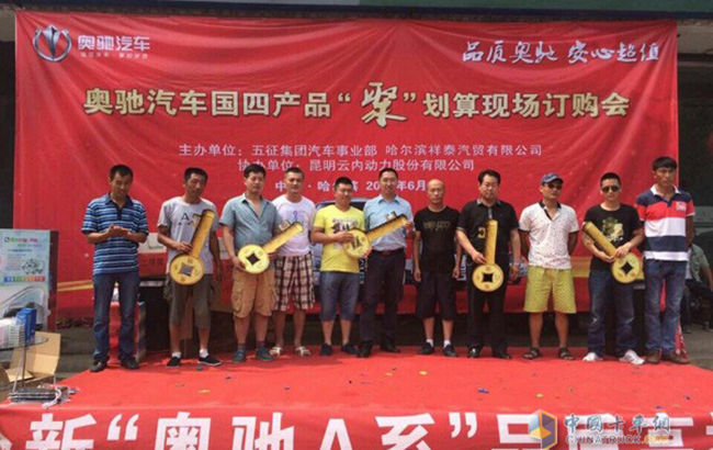 2015年6月28日,奥驰汽车高品质的国四产品在哈尔滨、海口两地整装待发,共邀用户品鉴。通过现场产品讲解及优惠购车活动,成功实现两地订车40台,进一步提升了奥驰汽车在当地的产品影响力,跃升为当地的明星产品!