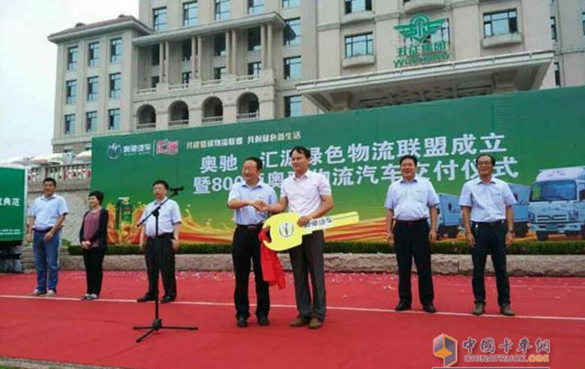 汇源果汁集团作为行业的领军品牌,拥有自己庞大的物流运输体系。尤其是2014年以来,汇源集团在营销体制上做了很大的改革,创立了营业所,销售网络的多样化布局,加强了物流与互联网+的营销模式。“目前全国有1000多家营业所,无论是直线物流还是短线物流都需要低碳环保的物流车。经过长时间的考察,我们最终选择了奥驰汽车,奥驰汽车的产品特性非常符合我们的运输需求,尤其是其强大的承载能力、动力性非常具有竞争力。”汇源果汁集团有限公司贸易部总监高召军介绍说,这批运输车将分布到全国各地使用,带动整个运输物流发展。