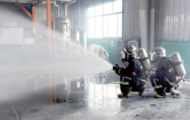 6月29日,五征农用车事业部涂装二车间,消防员正在车间“灭火”。