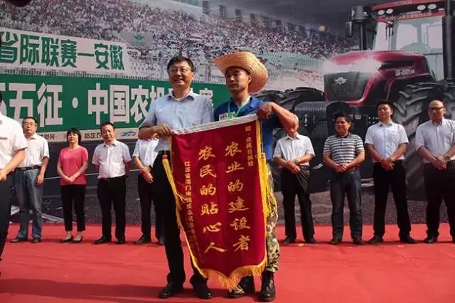 同时,去年江苏省机王施明向大赛赠送锦旗以表感谢,农民日报社副总编辑夏树代表大赛主办方接受了锦旗。