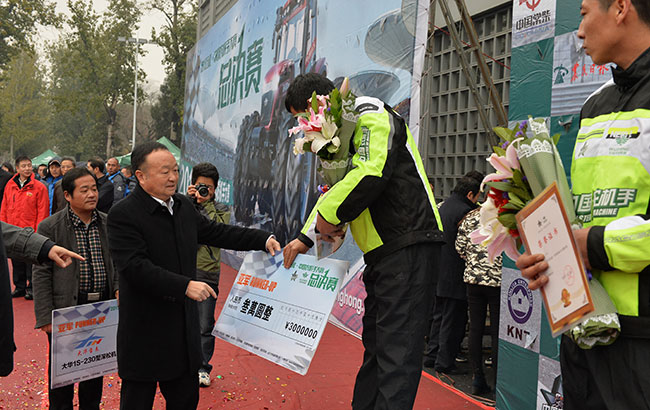 农业部党组成员、总经济师杨绍品,中华全国总工会书记处书记、党组成员赵世洪等与姜卫东董事长为获得全国十强的选手颁奖。冠军选手还获得山拖泰山TS1204拖拉机等价值20万元的奖品和10万元奖金,其他十强选手分获不同额度的现金及实物奖励。