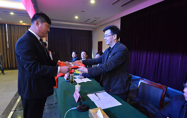 12月29日上午,一场别开生面的颁奖仪式在临沂市蒙阴县举行。来自山东省农机局、农民日报社以及17个地市的农机主管部门领导及部分获奖农机手代表与五征集团工作人员来到中国机王邹剑的家乡,为他送上机王大奖,并召开全省农机职业技能竞赛活动座谈会。山东省农机局纪检书记王瑞华、农民日报社编委、总编室主任余向东、山东五征集团副总经理苑忠亮分别在在仪式中做了重要讲话。