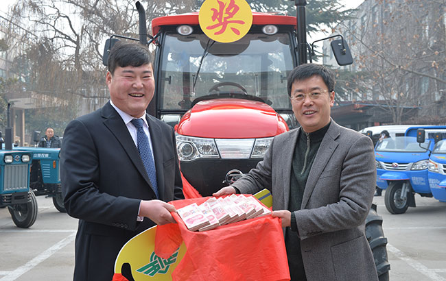 在颁奖典礼现场,五征集团副总经理苑忠亮将五征集团提供的TS1204拖拉机钥匙和10万元现金交到中国机王邹剑手中。而小伙邹剑的冠军大奖合集价值超过了30万!