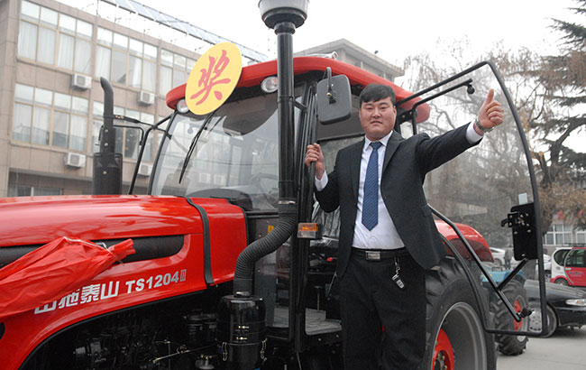 获得这些奖品的邹剑,显得十分的兴奋, 马上登上崭新的TS1204,左摸摸右看看不舍得下车。好不容易走下车的邹剑,非常兴奋地告诉记者说:感谢农机手大赛给我们农机手提供了一个切磋技艺,相互交流的平台,今天获得这台TS1204拖拉机是我一直的一个梦想,所以我感到非常兴奋;下一步,我将积极组织周围更多的农机手练技能、提水平,努力成为一名新型的职业农民,为现代化农业做出更大贡献。