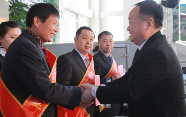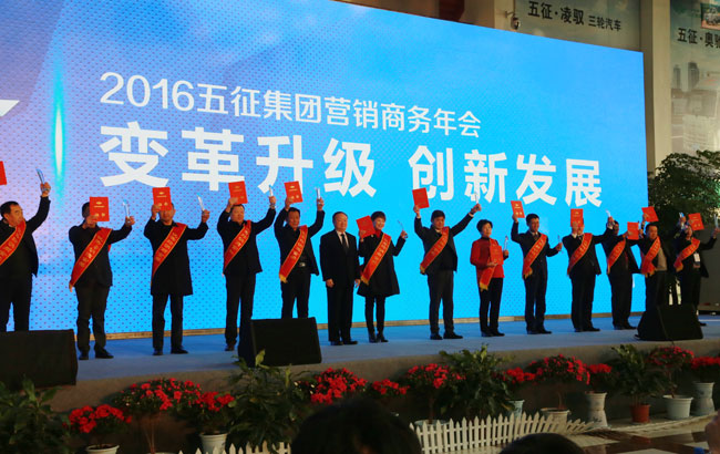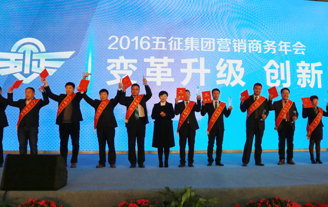 商务年会上,五征集团对2015年营销业绩突出的经销商进行了表彰奖励,设置了优秀经销商金奖、汽车销售金奖、农用车销售金奖、农业装备销售金奖、销售增幅奖以及精诚合作奖六大奖项,共有85家经销商获奖,三家优秀经销商代表作了发言。