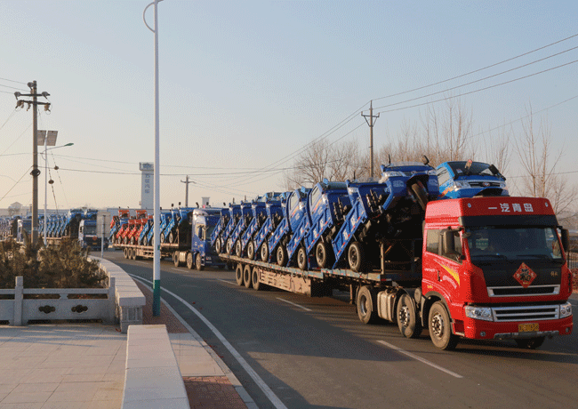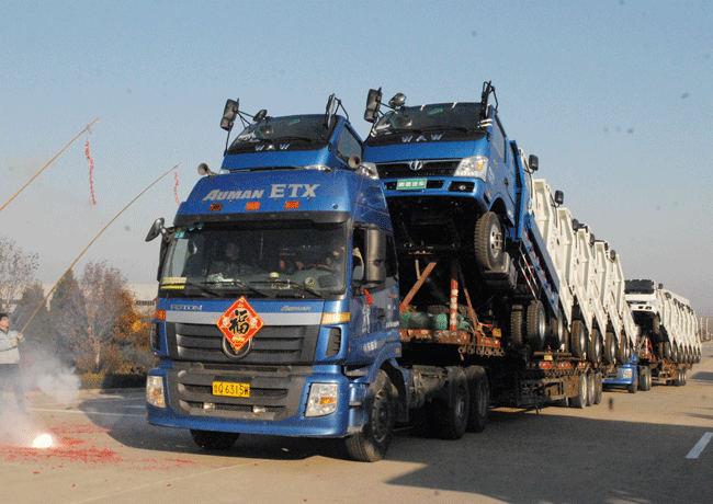 汽车事业部、农业装备事业部的发货场上也是一片忙碌的景象,满载着27辆奥驰汽车的运输车依次驶出厂区奔赴西藏。据营销公司负责人介绍,春节前,他们根据市场需求,提前组织了五个运输车队,节后生产第一天,他们按照市场计划需求,合理安排装车发货,当天上午就要发走大型运输车近70辆,标志着五征产品节后销售迎来了开门红。