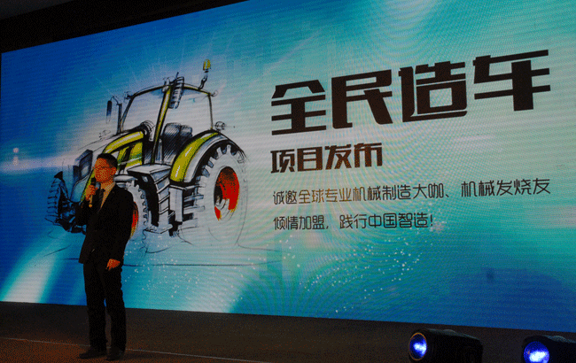 大会现场,由大赛组委会成立的专业赛车研发团队精彩亮相。研发团队代表五征农业装备研究院负责人向与会人员介绍了《全民造车》项目,并诚邀全球专业机械制造大咖、机械发烧友、民间高手倾情加盟,参与以大赛指定赛车五征1304、2104及三行、五行玉米收获机为蓝本的专业赛车改造,联合多方智慧制造出新一代现代农业装备。项目初衷是积极响应国家“中国制造2025”,践行国家农业供给侧改革,创新农业机械制造技术,促进中国农业机械制造工业水平提升。另外会上还发布了四大“全球征集令”,面向全球征集中国农机手大赛奖杯、吉祥物、服装、赛车包装,征集详细情况。