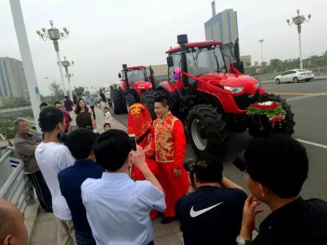 据了解,新郎新娘均是研究生毕业,新郎在筹备婚礼的日子里突发奇想,就用家乡的特产——五征雷诺曼大马力拖拉机做婚车。这个想法得到了多方支持,于是就有了今天这拉风的一幕。预计这个新闻,很快要登上各大媒体的头条了。